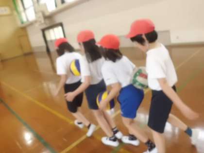 手押し相撲やボールを使い,体全体をほぐしています。