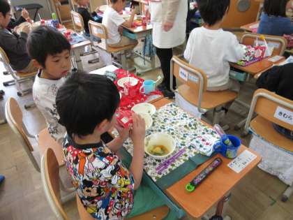 今日は何かなと,楽しみにしています。作り立て,出来立ての給食は「おいしい!」と反応は上々です。