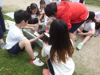 【理科】ツルレイシの種を植えたよ