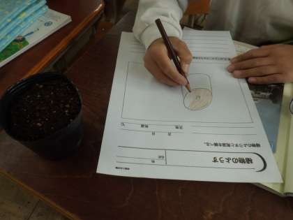 前回までの学習で種を観察したり,芽を出しやすくするために少し切って水に浸したりと準備を重ねてきました。