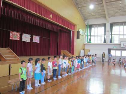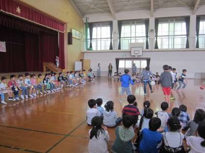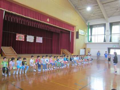 1年生を迎える会が行われました。この日を楽しみにしていた1年生です。手作りペンダントのプレゼントやお兄さん,お姉さんたちからの楽しい出し物に,心のこもった優しさをいっぱい感じることができました。最後に,「ドキドキドン 1年生!」の歌とダンスでお礼の気持ちを届けました。