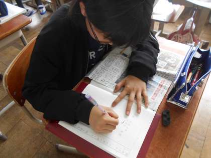 国語科で新聞について学習しています。今日は,興味をもった記事を選んで,意見や感想を書く「スクラップ活動」に挑戦しました。記事から感じたことなどを,吹き出しを使ったり,線を引いたりしながら,それぞれが工夫してまとめていました。金曜日の朝の「コミュニケーションタイム」に,選んだ記事を紹介し合いたいと思います。楽しみです!