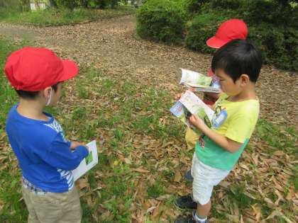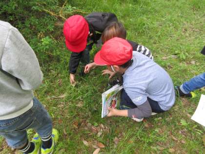 「タンポポみつけたよ。」「てんとう虫つかまえた。」