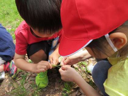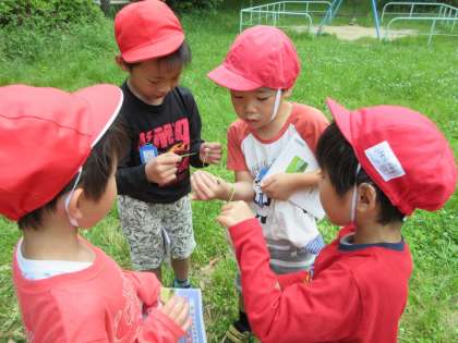 生活科の学習で竹の里公園へ「わくわくさんぽ」に出かけました。いつも遊んでいる公園ですが,意識してよく見ると春の自然がいっぱいです。みんな夢中になって,春の自然とふれあうことができました。