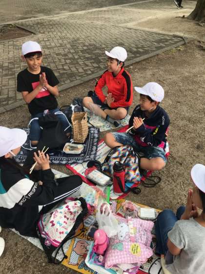 心配した雨も上がり,お天気の中,朝早くから作ってもらったお弁当をいただきました。