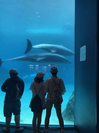 大水槽には,シャチやイルカが気持ちよさそうに泳いでいます。