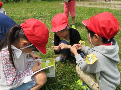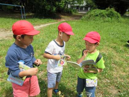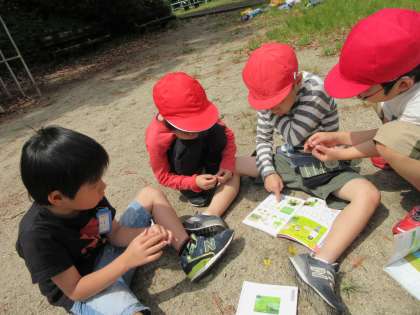 先週に引き続き,生活科の学習で「わくわくさんぽ」に出かけました。前回と違う春の自然を見つけることができました。しぜんの図鑑を見て名前を見つけたり,春の自然遊びをしたりして楽しみました。