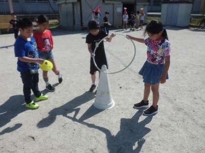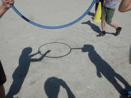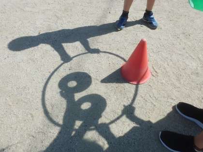 太陽の光でできる影の形をいろいろな材料を組み合わせて楽しみました。