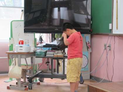 今日は音読している物語のクマさんになりきって,演技をしました。