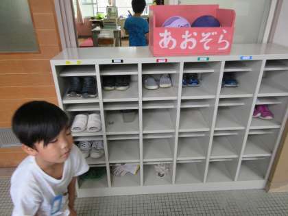 掃除のごみ捨てへ行った際,「あれ?6年生靴を反対に入れてる。」と気がついた児童がいました。