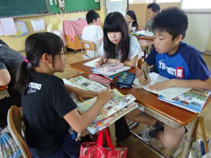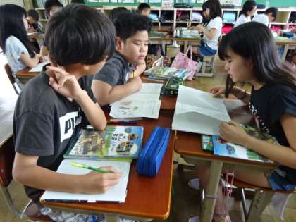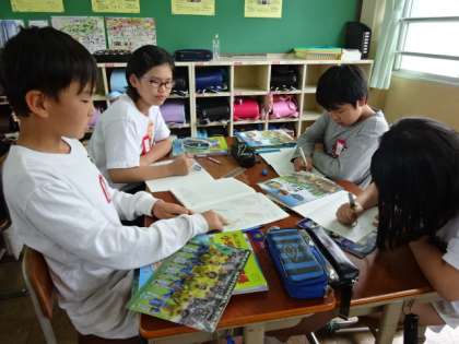 社会科で調べたことを友達に伝えました。書き込んだノートの絵などを見せながら友達に説明するのですが,分かってもらえるように話すのはなかなか難しいのです。ですが,聞き手がうなずいたり,「どうやってしていたの。」と尋ねたりすることで,話し手は分かってもらえるように説明しようとする気持ちが増えていたように感じました。