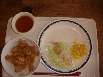 今日の昼食のメニューは,塩ラーメンがとり照り丼を選べます。もちろん,バイキングはあります。