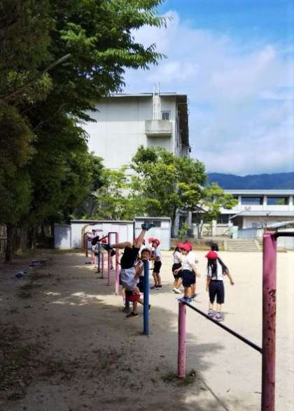 てつぼうの学習を始めました。低学年までは「てつぼう遊び」だったのが,3年生からは「てつぼう運動」に変わります。難しい技に挑戦したり,今できる技を組み合わせたり,連続技にチャレンジしたりと,レベルがぐんと上がっていきます。てつぼうが得意な子は,さっそく組み合わせ技を考え,連続技に挑戦していました。