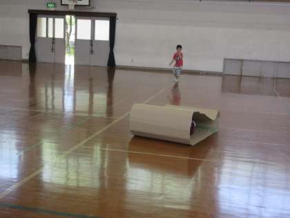 さっそく体育館で「キャタピラーリレー」。