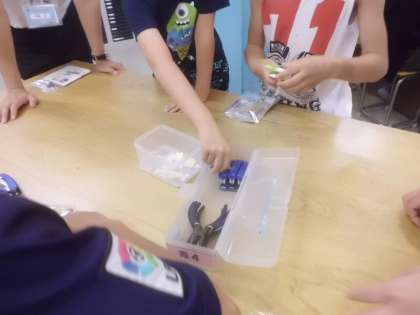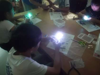 どきどきした様子で,電池をはめると綺麗に光りました。