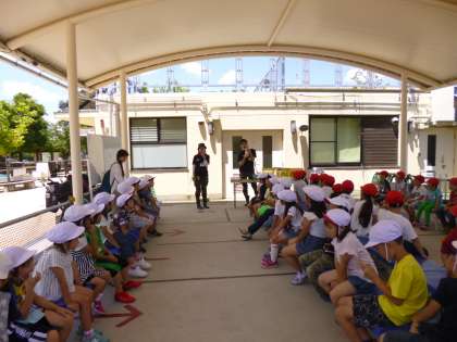 晴天に恵まれ,予定どおり,動物園に遠足に行きました。動物園では,たてわりグループでクイズラリーに挑戦です。11時のふれあい動物教室までの時間を使って,地図を見ながら仲良くグループで園内を回りました。