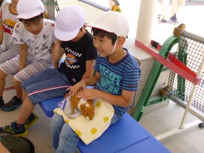 ふれあい動物教室では,一人ずつテンジクネズミを抱っこしたり,ウサギを触ったりしました。「かわいい!」と大喜びの子どもたちでした。