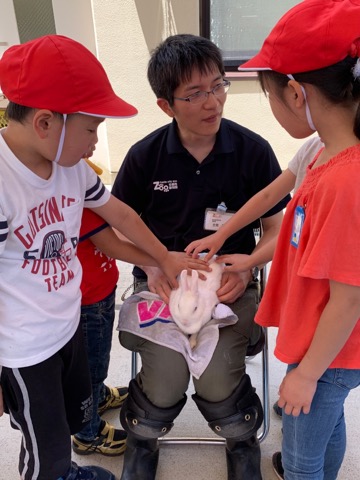 ふれあい動物教室では,ウサギとてんじくネズミに触れ,あおぞらの児童もドキドキしながらも触れることが出来て,「ふわふわだった」「かわいいね」と教えてくれました。