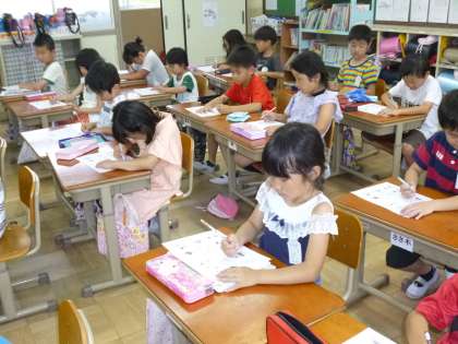 スキルアップタイムを使って,聞き取りの学習を続けています。学習中はおしゃべりは厳禁です。よく聞いて,何の音か,何の声かを答えていきます。集中力が必要な学習です。