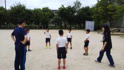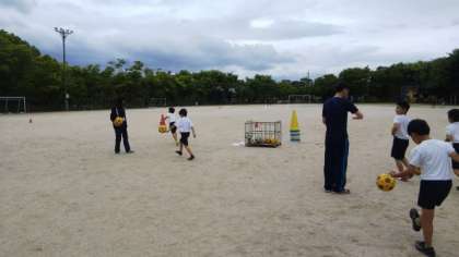 つづいて,リフティング,1人100回!!いきなり攻めます。初心者の子は,ワンバウンドさせてからリフティングに挑戦しました。
