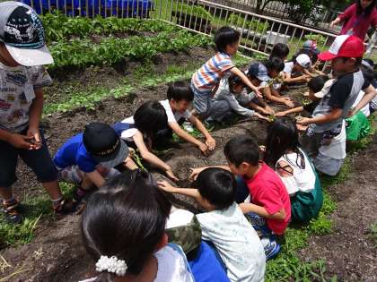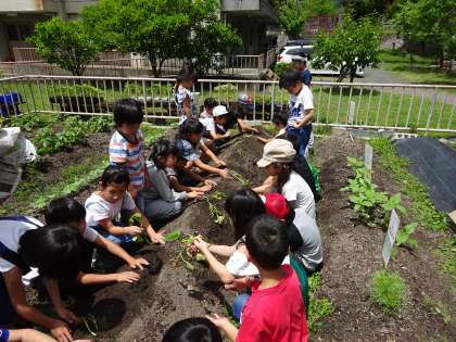 これで2年生が育てる野菜は,ミニトマト,オクラ,サツマイモの3種類になりました。どれも元気に育って,美味しい野菜が収穫できるといいなと思います。