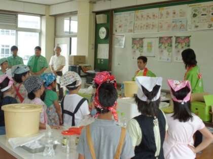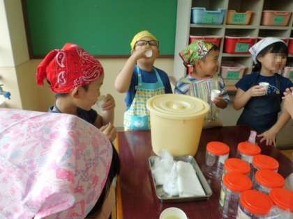 紀州のお話や梅にまつわるエピソードを聞いた後,梅ジュースを試飲させていただきました。「リンゴジュースみたい!」「甘い!」と,思っていた梅の味とは違ったようで,驚いていました。
