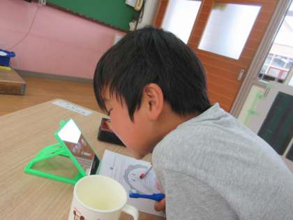 「どう?赤色の薬取れた?」なんて言いながら,しっかり鏡を見ながら歯をみがくことができました。