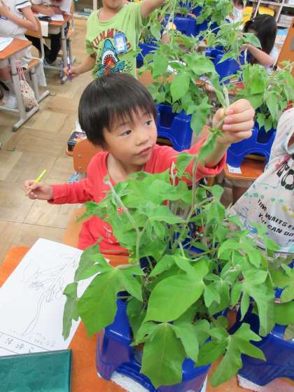 「2年生のミニトマトみたいに棒をたてたらいいな。」