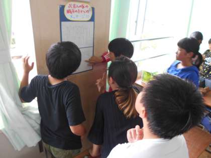 5月にお世話になった花背山の家の職員の方から,お手紙が届きました。ホームページでみんなの頑張りを見ていること,そして,これから先も山の家の3泊4日で学んだ「協力すること」「挑戦すること」の大切さを忘れずに日々の生活を送ってほしいという思いなどが書かれていました。応援していただいていることを知った子どもたちはとても喜んでいました。山の家で学んだことを振り返るいい機会になりました。さぁ,明日からも頑張ろう!
