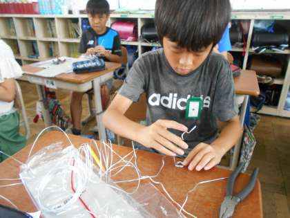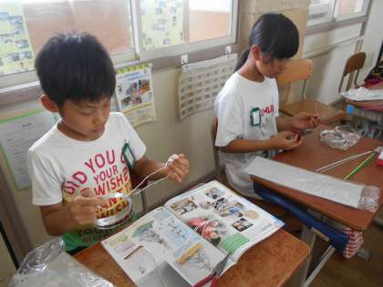 図画工作科の学習で針金を曲げたり,巻き付けたりしながら,立体にする活動をしています。自分のイメージを膨らませながら,今日はいろいろな曲げ方,巻き方に挑戦していました。次は,美しさやバランスを考えながらつくり上げていきます。個性あふれる作品が完成しそうです!!