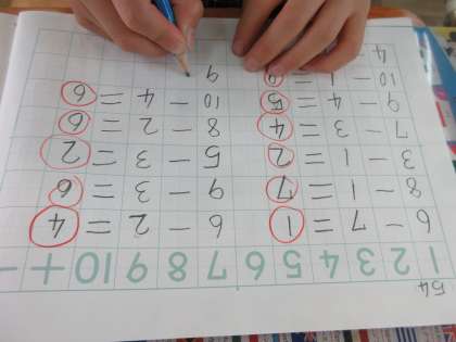 計算カードを使って,スキルアップの時間に計算練習をしています。ブロックを動かしながら計算していた子も,慣れてくると頭の中で計算ができるようになってきています。