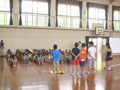 7月10日(水),中間休みに体育館で「ぞうきんがけリレー」を開催してくれました。全校のみんなにたくさん運動をしてほしいので考えたということです。
