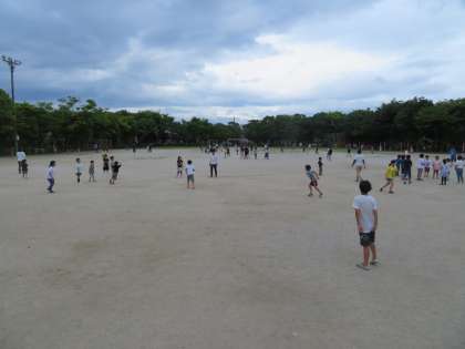7月9日(火)に第1回たてわり遊びがありました。これまでにスポーツテストや竹の里チャレンジ大会などでいっしょに活動してきたので,どのグループもみんなすっかり顔なじみになっています。今回は鬼ごっこをしていたグループが多かったので,広い運動場を自分のグループの友達を探しながら子ども達は駆け回っていました。汗びっしょりですが,とても楽しそうな笑顔が見られました。また,上級生が下級生に優しく接する姿,下級生が上級生に甘える姿,とても微笑ましかったです。次のたてわり遊びは,2学期の予定です。
