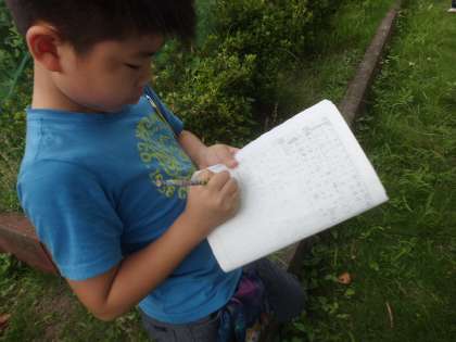 「バッタが大きくなっているよ。野菜の実もよく育っているね。」