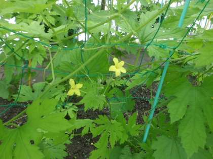 春は種だったツルレイシも可愛い黄色の花を咲かせています。