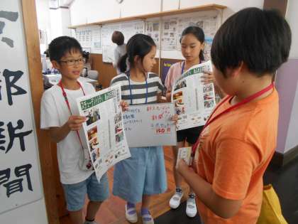 京都新聞社では,シティ内で取材をして集めた記事と各ブースの広告を紙面にのせ,新聞を発行していました。何度も確認しながら売り上げを計算していたり,新聞に載せるための写真を頑張って撮っている姿が見られました。
