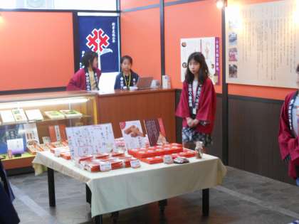 井筒八つ橋では,八つ橋について説明し,販売をしていました。お客様の目を見て「いらっしゃいませ」「ありがとうございました」というとても丁寧な接客が印象的でした。