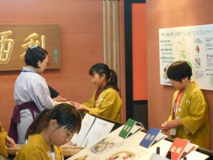 西利では,お漬物の製法の説明や販売をしていました。おすすめのお漬物を書いたり,人気ランキングを書いたりと,売り上げを上げるために様々な工夫をしていました。店頭に立っての「おいしいお漬物いかがですか〜?」という呼込みも頑張っていました。