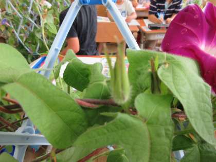 毎朝,色とりどりの花がどんどん咲いています。つぼみに混じって,不思議な形の実のようなものができている子がいます。「たねになるのかな?」これからどうなるのか,楽しみです。