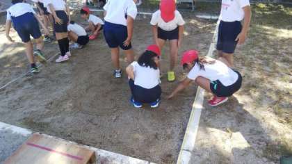 一人ひとり役割を決めていて,記録を測る人,記録を書く人,砂をならす人…などなど,いろいろな仕事があります。