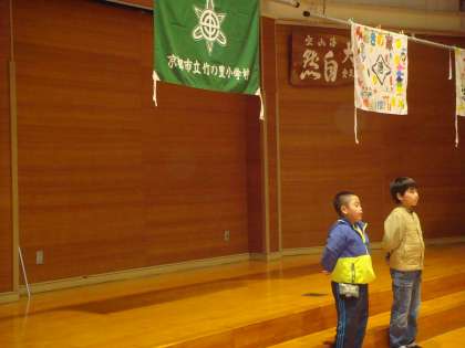 朝の集いは,3小学校の学校紹介があります。唐橋小学校,北醍醐小学校そして,竹の里小学校です。