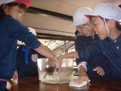 子どもたちは,海の生き物を手に取って感じています。感じている子どもたちを見て私は,楽しんでいます。