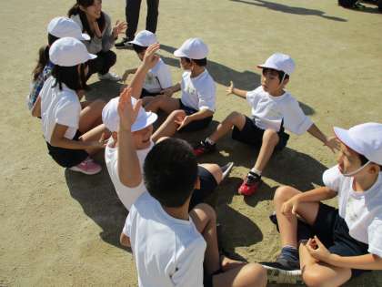 ペアになっている上里小学校の5年生と久しぶりの再会。