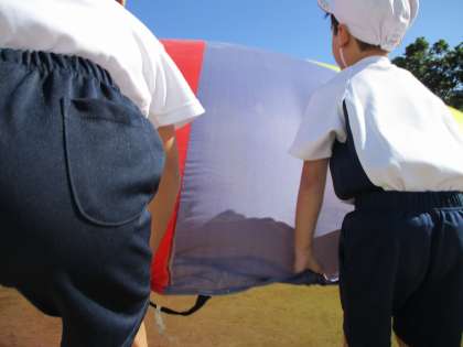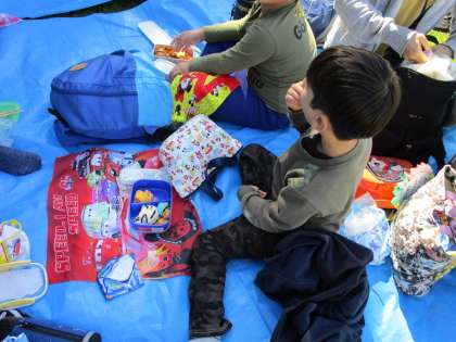 近隣学校の友だちと一緒に食べて,一緒に鬼ごっこすることができました。