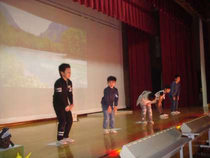 あおぞら学級「あおぞらファイブの大冒険」です。さあ!あおぞらの子どもたちが,どきどきする冒険に出発するのですが,楽しい踊りがあったり,クイズもでてきますよ。