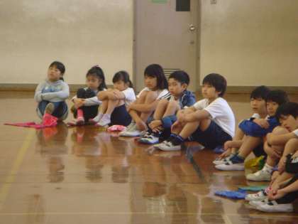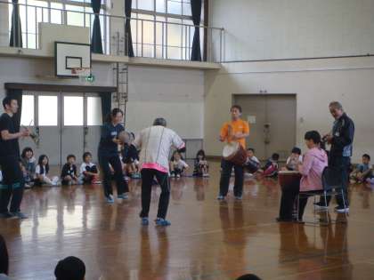 今回来られた演者の方の開口一番「今日は,竹の里小学校に遊びにきましたあ〜!!」子どもたちは,この一言で大歓声。(え?勉強じゃあないの?)という顔をしています。
