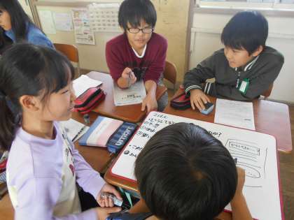 総合的な学習の時間に5年生は竹の里の町をしあわせにするためにはどうすればよいかを考えています。おうちの人や地域の方,校長先生などに「竹の里の町は,どうして子どもが減ったのか」についてインタビューをしたり,パソコンを使って調べたりし,そのことについてグループで話し合いながらまとめていきました。インタビューのご協力,本当にありがとうございました!!いろいろな原因が分かり,子どもたちからは「へぇ,そうだったのか」や「私のお父さんも同じようなこと言ってた!」など様々な声が聞こえてきました。次からは,しあわせな町 竹の里をめざして,自分たちにできることを考えていきます。