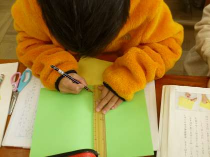 教科書の説明文を読んで,友だちと書いてあることを確かめながら,しかけカードを作っていきました。はじめに,つぎに,それから・・・といった順序を表す言葉や写真を手掛かりに,間違えないように作っていきました。説明するときの分かりやすい書き方を学びました。