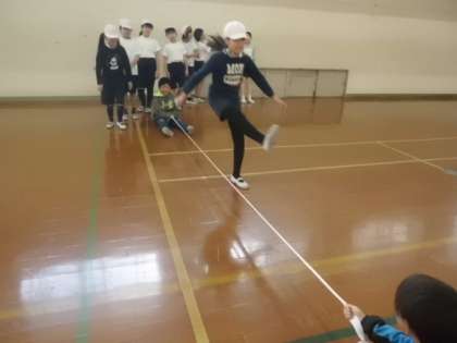 まずは,ゴムで練習して,その後,実際に跳んでみました。