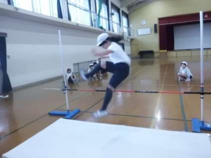 より高く跳べるように,足の運び方や腕の振り方など正しい跳び方ができるように練習しています。